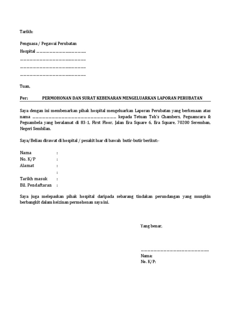 Surat keizinan dari pesakit untuk mengeluarkan laporan perubatan. Ramai yang menulis format surat rasmi yang salah. Surat Rasmi Dari Hospital Surat Rasmi S Contoh Surat Permohonan Laporan Perubatan Surya rasm share to.
